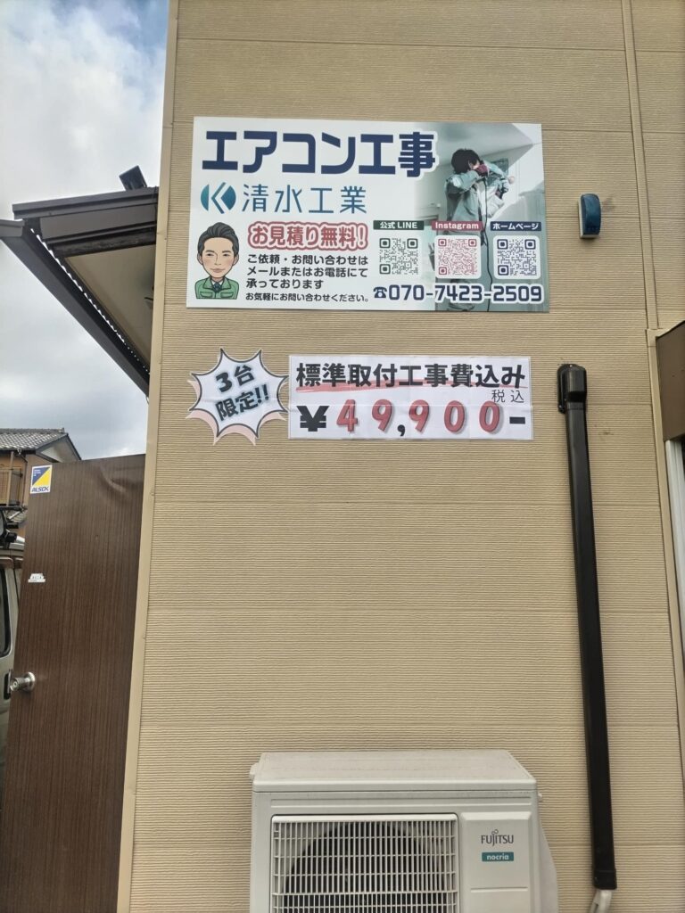 話は変わりますが、看板の設置と同時に在庫処分という事で東芝2024年モデルを販売しております。(6畳用)